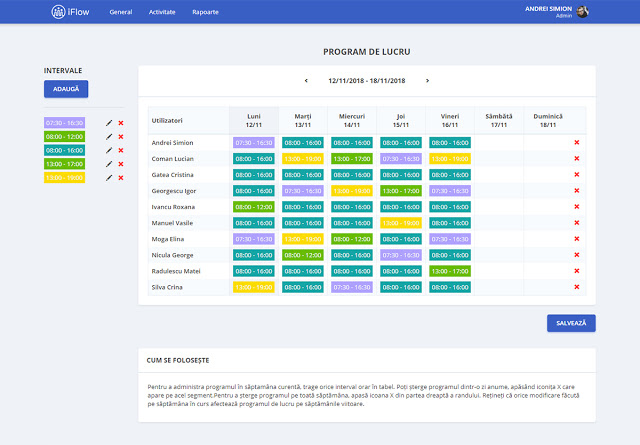 - Poti seta programul salariatilor tai cu ora de inceput si de sfarsit.