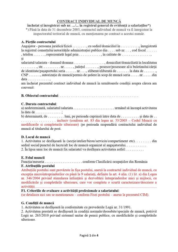 In data de 19.07.2021 a fost publicat in Monitorul Oficial, Partea I, nr. 712 , Ordinul nr. 585 emis de Ministerul Muncii si Protectiei sociale cu privire la modificarea si completarea modelului-cadru al contractului individual de munca, prevazut in anexa la Ordinul ministrului muncii si solidaritatii sociale nr. 64/2003.