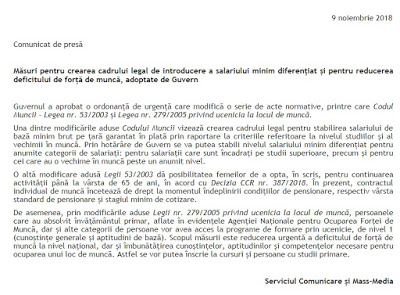din data de 10.12.2018Art.1. In conformitate cu prevederile H.G. nr. 937 din data de 10.12.2018 privind stabilirea salariului de baza minim brut pe tara garantat in plata, incepand cu 01.01.2019, se majoreaza salariile de baza pentru urmatorii salariati, conform tabelului de mai jos: